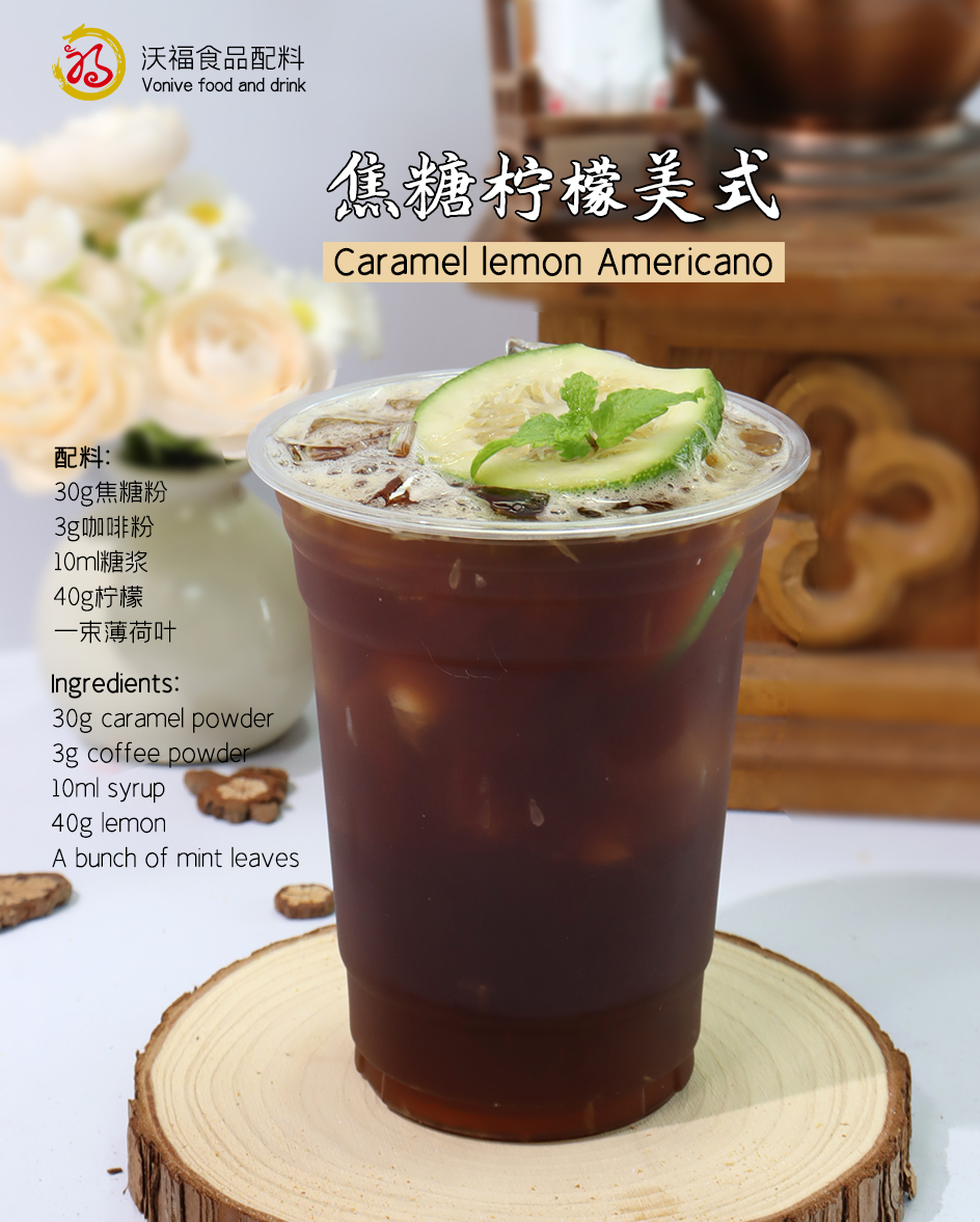 Vonive Caramel Powder: It has a strong caramel aroma and a slightly bitter taste. It can be used for external powdering and sprayed with a torch to form a crispy crust, and then placed on brulee or milk caps. It can also be used to make caramel sauce, which can be hung on the wall of a drink cup or poured on ice cream and shaved ice.