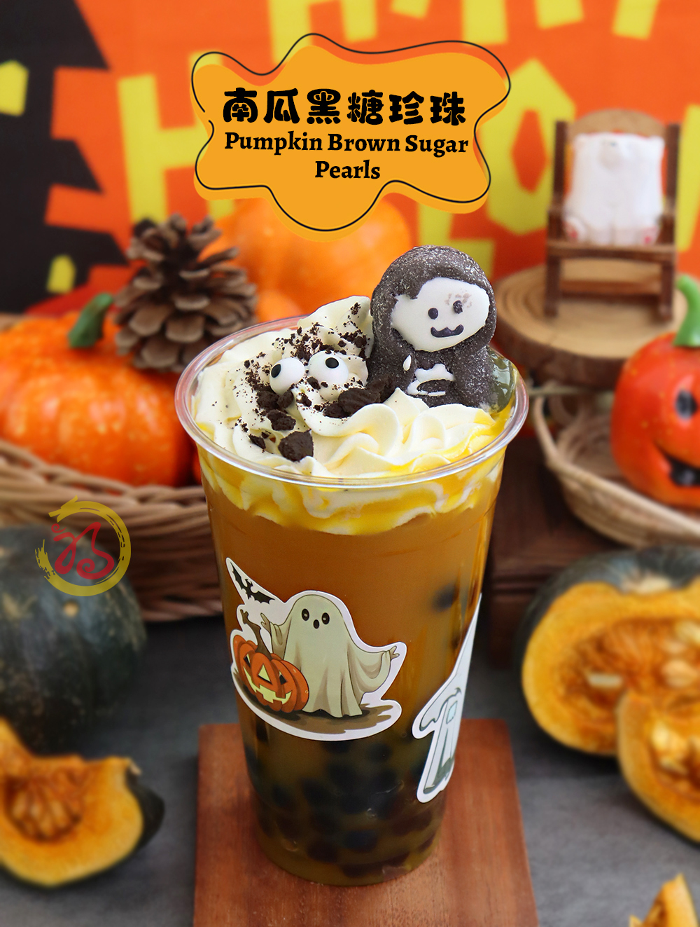 The refreshing pumpkin juice mixed with the chewy, soft and sweet pearls and paired with dense cream, the triple taste is as light and agile as a ghost dancing on Halloween, giving people an immersive joy.
