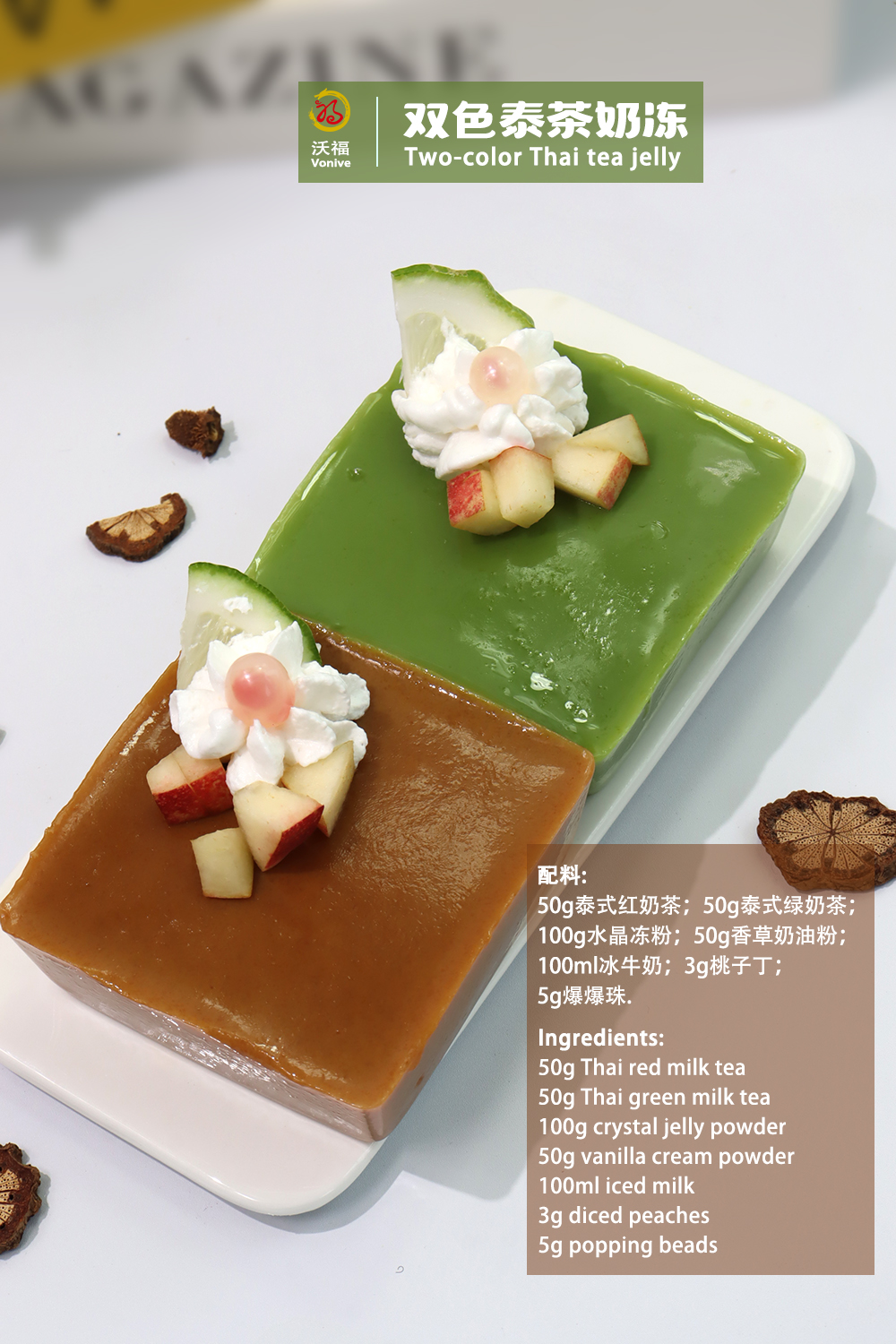 Vonive’s Thai Green and Black Tea Powders are crafted from high-quality Thai tea leaves, offering unique flavors and exceptional quality.