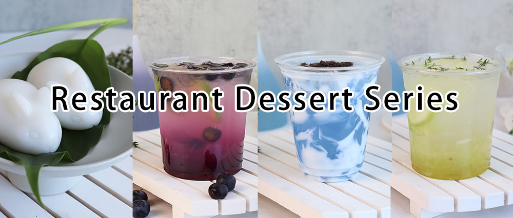 Vonive restaurant dessert series, pandan,brown sugar,coconut,pudding,mulberry, lemon,panna cotta, jelly,fruit juice
