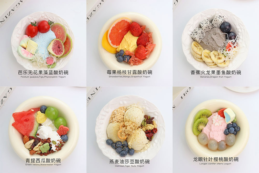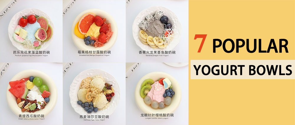 Discover the Vonive 7 Models Popular Yogurt Bowls! Indulge in flavors like Mango Sago, Longan, Acerola Cherry, Phycocyanin, Green Juice, and more.